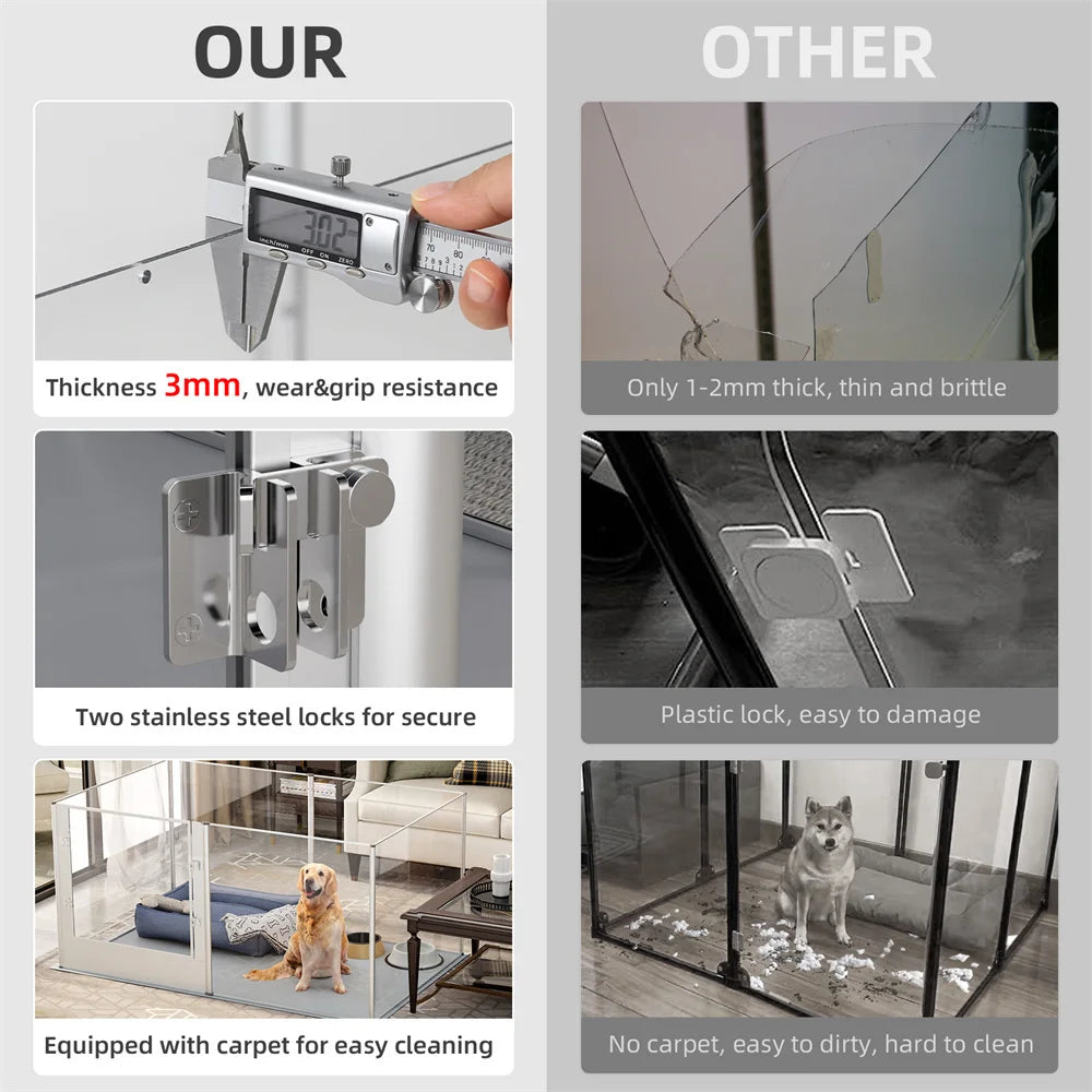 Meet BORWARTH CrystalClearAcrylic 3-in-1 Pet Playpen—a crystal-clear, safe, and versatile space that grows with your pets from playpen to whelping pen while protecting your floors.