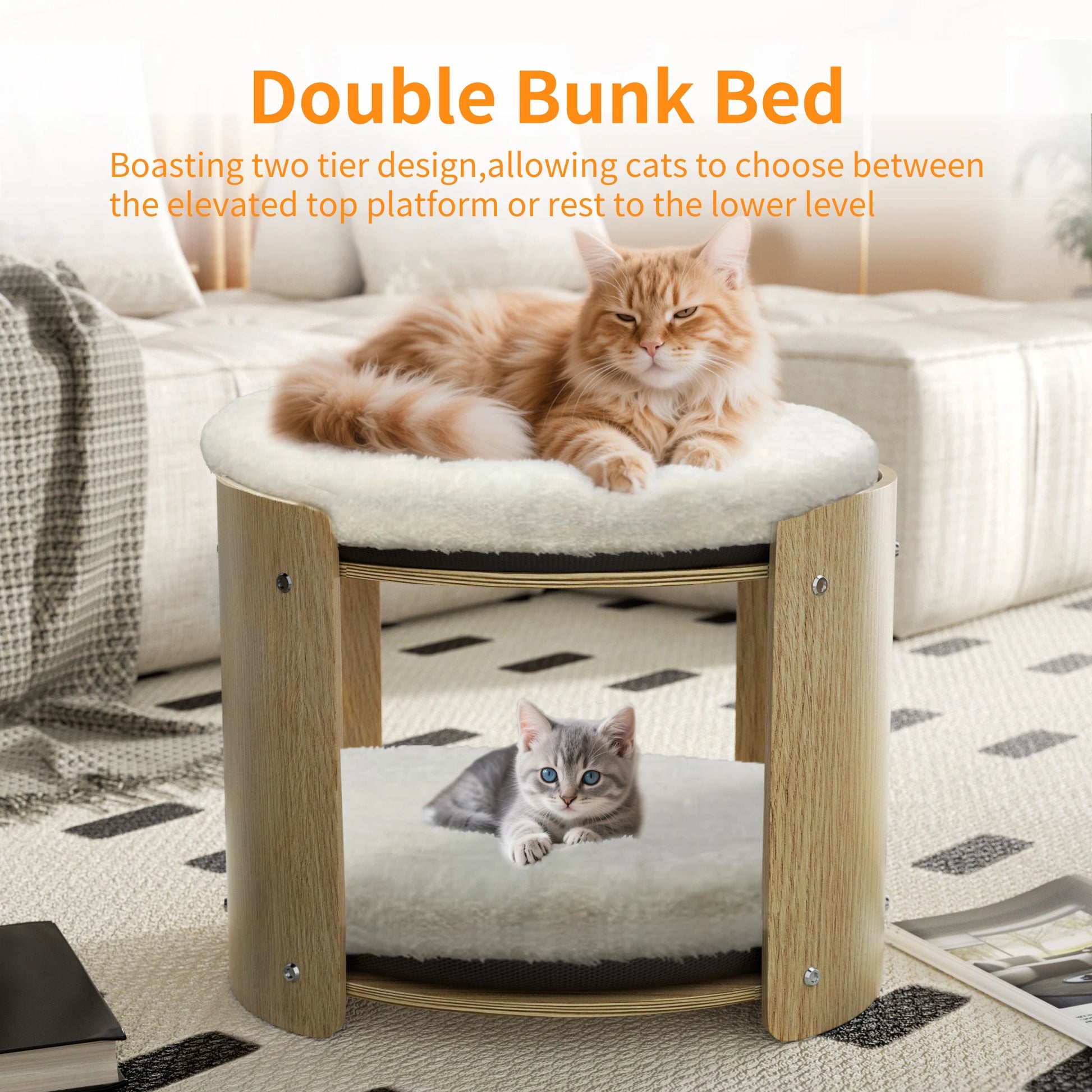 Give your indoor cat a stylish, cozy retreat with this elevated 2-tier cat bed that blends natural bamboo charm and plush comfort for lounging, climbing, and restful naps.